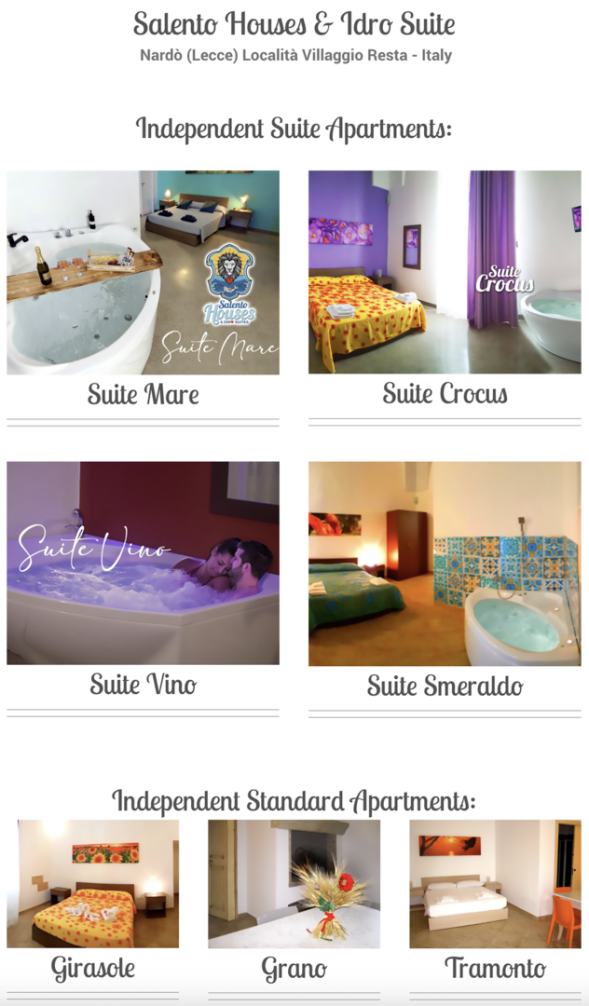 Benvenuti nel cuore del Salento! Vi aspettiamo per un soggiorno indimenticabile tra mare cristallino, comfort e relax. Scegli la tua oasi: suite con idromassaggio, case vacanza o villa al mare! Anche i vostri amici a quattro zampe sono i benvenuti. Clicca il bottone giù e scegli il tuo appartamento. A presto, Simona