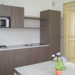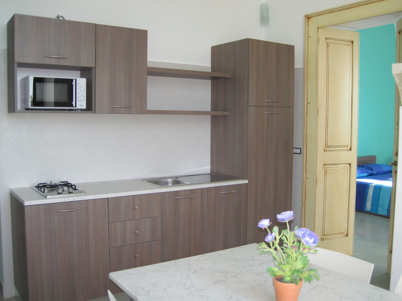 - Angolo cottura con 2 fuochi, microonde, frigorifero, freezer, stoviglie e pentole
